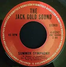 "Summer Symphony" was also covered by songwriter and producer Jack Gold in 1970. His rendition reached #10 on the U.S. Easy Listening chart in the summer of 1970. The following summer the song was re-released and became a hit again, reaching #34. It was included on a compilation LP, Make The Music Play (Neil Sedaka's Songwriting Gems 1963-1971).[2]