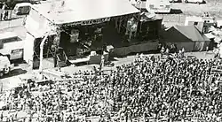 Looking to pull in bigger crowds, the founders booked international acts with British rock band Queen performing in 1974.[1] They arrived late, and were initially booed by a crowd who expected to see home grown acts, but they finished their set despite crowd screams of "go back to Pommyland, ya pooftahs". Lead singer Freddie Mercury retorted with "When we come back to Australia, Queen will be the biggest band in the world!".[1] A fledgling Skyhooks were also booed and returned the following year with a new lead singer, Graeme "Shirley" Strachan. In 1975 another British band, Deep Purple, were head-liners. A fracas developed on-stage between Deep Purple's roadies and AC/DC's roadies and members. Due to poor weather and high ticket prices the attendance was down to 16,000. Odessa Promotions was liquidated after paying out Deep Purple but most local acts were not paid by Odessa. Late in the year, Deep Purple placed money into a fund so that unpaid artists were paid at the full musician's rate.