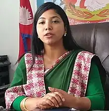 Sunita Dangol (Nepali: सुनिता डंगोल, born 18 May 1993[1]) is a Nepalese politician, Newa heritage conservationist, language activist, and media professional.[2] She is currently serving as the deputy mayor of Kathmandu metropolitan city, the capital city of Nepal. She assumed office on 30 May 2022, alongside mayor Balen Shah.[3]