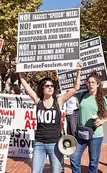 - ↑ Hains, Tim (22 February 2017). "Back to Videos 'Refuse Fascism' Activist vs. Tucker Carlson: Trump Is More Dangerous Than Hitler". RealClearPolitics. Retrieved 22 February 2017.