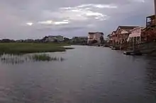 The seaside town of Sunset Beach got its start in 1955 when the land it occupies was bought by Mannon C. Gore. Impressed by the sunsets the southeast-facing island offered, he renamed 'Bald Beach,' as it had been called previously, to 'Sunset Beach.' Development began in earnest with the completion of a bridge connecting the beach island to the mainland in 1958,[5] modeled by Gore and operated by him until 1961 when it was taken over by the North Carolina Department of Transportation. With the help of his son, Edward, Gore began selling property on the island in 1958. Additionally, Gore built the original pier on the island, named the 'Vesta Pier' for the beached civil war blockade-runner which sat beneath the structure, though is now completely covered by sand.[6] Sunset Beach was later incorporated as a town in 1963.[7]