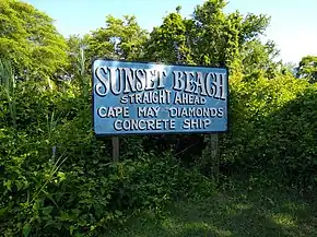Sunset Beach is a beach located on the Cape May Peninsula, in Lower Township, New Jersey,[1] near Cape May Point, along the Delaware Bay, in the U.S. state of New Jersey. It is a local tourist attraction due in part to its proximity to the SS Atlantus, also known as the Concrete Ship, and the Cape May Lighthouse.
