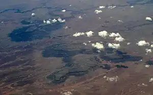 ![]() Oblique air photo of West (foreground) and East (background left) Sunset Mountains