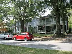 The majority of resources were built from the 1910s to the 1960s and incorporate Queen Anne, Bungalow/American Craftsman, Tudorbethan, Colonial Revival, Cape Cod (house), Ranch-style house, and Commercial building styles of architecture. The earliest houses are scattered along Northern and Central boulevards; 1940 to 1950s Cape Cod and Ranch houses line the cross streets. Architecturally, the earliest designs are Queen Anne style, dating to the early 1910s. The two-story dwellings have hipped or gabled roofs, wraparound porches, corner towers, bay windows, projecting wings, wood or simulated siding, shingles, decorative brickwork, and a wide range of window types.[2]