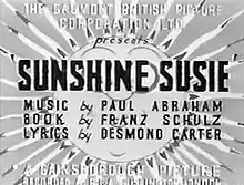 Sunshine Susie is a 1931 British musical comedy film directed by Victor Saville and starring Renate Müller, Jack Hulbert, and Owen Nares.[1] The film was shot at Islington Studios[2] with sets designed by Alex Vetchinsky. It was based on a novel by István Szomaházy. An alternate German-language version The Private Secretary was made, also starring Renate Müller.