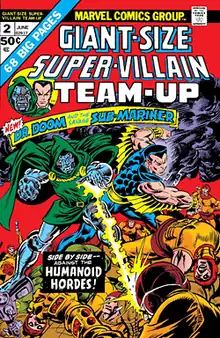 The first series started in 1975 with two giant-size issues[1] before launching as a regular series,[2][3] and was mostly bi-monthly during its existence. It initially teamed up Doctor Doom and the Sub-Mariner, who had lost his own series, from which it picked up the unresolved plots, especially that of the comatose Atlanteans. After a succession of writers and artists and a crossover with The Avengers, the plot gets resolved in issue #13 when Doctor Doom revives the Atlanteans, thus dissolving his alliance with the Sub-Mariner.