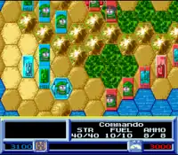 Super Conflict is a military simulation game played on a hex map in which players try to capture the opponent's "Flag Tank" or "Flag Ship". The map consists of various terrain tiles with movement and defense modifiers. For example, bridges and deserts lower the defense ratings of occupying troops; hills and mountains provide additional defenses but require more fuel to move through. There are over 55 different scenarios and 16 two-player scenarios.[13]