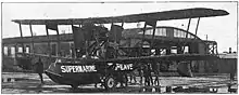 The Amphibian was a single-engined biplane flying boat with a wooden hull and unequal wingspans. The 350 horsepower (260 kW) Rolls-Royce Eagle engine was mounted between the wings in a pusher configuration (with the propeller mounted behind the engine). The tail had a single vertical fin, and single tailplane mounted halfway up the fin.[4][5] The front of the aircraft was designed to make sure that it lifted clear of the water prior to take-off, and the nose profile was similar to that of a boat. An innovation introduced by Mitchell was a mechanism to operate the ailerons simultaneously. The undercarriage was designed to be partially retractable.[4]