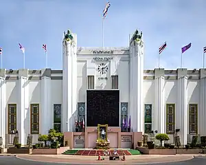 The stadium construction started in 1937 in the original area of Thai Windsor Palace that demolished in 1935.[3][4][5] The Department of Physical Education entered into a 29-year lease agreement with Chulalongkorn University. First use of the stadium happened when King Ananda Mahidol presided over in the opening ceremony of 1938 men's athletics competition, which changed the venue from Sanam Luang.[6][7]
