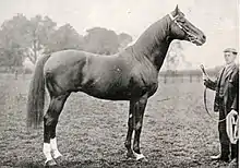 Surefoot (1887 – 1904) was a British Thoroughbred racehorse and sire whose exceptional racing ability was combined with a violent and unpredictable temperament. As a juvenile in 1889 he was regarded as the best colt of his generation in England after winning three of his four races including the Woodcote Stakes and New Stakes. He also demonstrated his precocity by reportedly siring a foal as a two-year-old. In 1890 he was an emphatic winner of the 2000 Guineas but despite being regarded as a near certainty for the Epsom Derby he finished fourth after spending much of the race attempting to savage other horses and jockeys. He went on to win a minor race at Royal Ascot and later defeated a strong field to take the valuable Prince of Wales' Stakes at Leicester Racecourse. As a four-year-old he showed little worthwhile form early in the season but returned to his best to win the Eclipse Stakes. After his retirement from racing he stood as a breeding stallion in England and France but had limited success as a sire of winners.