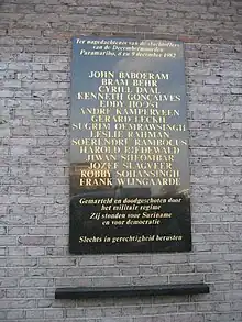- ↑ "De gebeurtenissen in Paramaribo, Suriname, 8-13 december 1982" (PDF). Nederlands Juristen Comité voor de Mensenrechten (in Dutch). 14 February 1983. p. 9. Retrieved 8 May 2021.