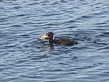 Surf scoter usually captures its food underwater and consumes it whole. They have been observed to select smaller bivalves than those available, probably because of the energy cost of processing shell matter. They also seem to select slow-swimming epifaunal crustaceans.[22]