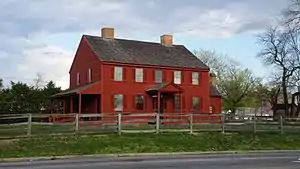 The original structure was built as a middle-class plantation house in 1852. Mary Jenkins met John Harrison Surratt in 1839, when she was 16 or 19 years of age (the date of her birth is not clear) and he was 26.[2][3][4] An orphan, John Surratt was adopted by Richard and Sarah Neale of Washington, D.C., a wealthy couple who owned a farm.[4][5] Jenkins and Surratt wed in August 1840.[3][4][6] The Surratts lived at a mill in Oxon Hill, Maryland,[4] and later at John's childhood home on a farm in the District of Columbia,[4] In 1851, the farmhouse burned to the ground (an escaped family slave was suspected of setting the blaze).[7] Within a year, John Surratt purchased 200 acres (81 ha) of farmland near what is now Clinton, and by 1853 he constructed a tavern and an inn there.[8] Mary initially refused to move herself and the children into the new residence (possibly because of her husband's drinking). She took up residence at the farm again, but John sold both the Neale farm and Foxhall in May 1853 to pay debts and she was forced to move back in with him in December.[9] The area round the tavern was officially named Surrattsville in 1853.[10] Within a short period of time, a post office was installed inside the tavern.[11][12][13] John Surratt was the hamlet's first postmaster.[2][10][14][15][16] In 1854, John built a hotel as an addition to his tavern, and called it Surratt's Hotel.[17] Over the next few years, Surratt acquired or built a carriage house, corn crib, general store, forge, granary, gristmill, stable, tobacco curing house, and wheelwright's shop.[2][15][18]