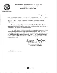 - ↑ "Seasoned Judge Tapped to Head Detainee Trials". Department of Defense. February 7, 2007. Archived from the original on July 10, 2008. Retrieved 2007-06-01.