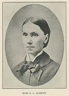 Susan Law McBeth (1830 – May 26, 1893) was the Presbyterian missionary to American Indians and author. She worked among the Choctaw in Indian Territory and, for two decades, among the Nez Perce in Idaho.[1] She was fondly called as "little mother” by the Nez Perce.[2]