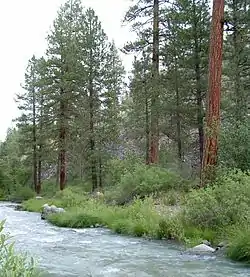 The Susan River is a northeastern California river of approximately 67 miles (108 km) length[3] that drains from an arid plateau of volcanic highlands along the Great Basin Divide to intermittent Honey Lake. The river flows from eastern Lassen County from east of Lassen Volcanic National Park generally east past Susanville and emerging into a ranching valley to enter the north end of Honey Lake. Along with Fredonyer Pass, the Susan River is the northern boundary of the Sierra Nevada.[4]