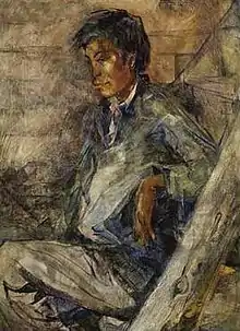 Ross continued her love of portraiture, painting friends and neighbors' children but eventually began to focus her efforts and inspiration on First Nations people after meeting an Ojibwa woman named Emily and seeing First Nations wild-rice harvesters at Whitefish Lake. Soon after the Second World War, Ross had met Sheila Burnford[6] the author of The Incredible Journey, an animal saga that Walt Disney adapted for the cinema. Ross and Burnford would subsequently travel extensively together. Norval Morrisseau invited Ross to Gull Bay and Armstrong to paint while he collected legends and songs and then subsequently to Big Trout Lake and finally to Sandy Lake. It was in Sandy Lake that Ross met Carl Ray and painted his portrait among many others. Ross and Morrisseau remained friends for many years although their friendship eventually became strained by Morrisseau's legendary drinking binges - a Morrisseau sketch entitled "Susan" depicting their friendship is held in the collection of the National Gallery of Canada.