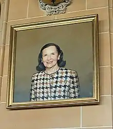 Portrait of Susan Wakil by Tsering Hannaford, in the MacLaurin Hall, the University of Sydney