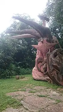 Wenger's sculptural works can be found in Osun Grove, an area parallel to the Osun River. Her involvement with the grove dates back to the 1960s.[7] Upon the invitation of an Osun high priestess who was troubled by commercial interests and termites destroying shrine facilities, sacred sculptures and carvings, Wenger teamed up with the Public Works Department and many local area artists to eradicate the termites and also redevelop the carvings and buildings within the shrine using both wood and cement.[14]