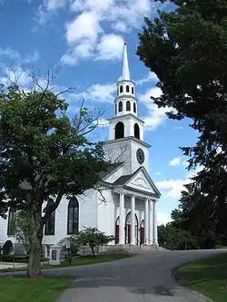 The Sutton Center Historic District is a historic district encompassing the center of the village of Sutton, Massachusetts. The district, which covers 435 acres (176 ha), is centered on the junction of Boston Road, Singletary Avenue, and Uxbridge Road. Boston Road is a major east–west route through the town, and the other two roads run north–south through the village center. The Colombian building was built in 1957. A typically rural village center, its civic and institutional buildings are clustered near the intersection on its south side, in the general area of the town common. The town common and cemetery were laid out in 1719, after settlement of the township began in 1716. There are a few surviving houses that date to the middle of the 18th century or earlier; exact dates for most are uncertain. There are only a few institutional buildings: the 1829 Congregational Church, the 1983 Town Hall, built on the site of the town's first purpose-built town hall (1885), and Rufus Putnam Hall, an 1824 school building and Masonic lodge that now houses the local history museum. Only one commercial structure the 1839 Brick Block, stands in the village. There is also a historic animal pound, a rectangular stone structure used to pen stray livestock, which dates to the early days of the town.[2]