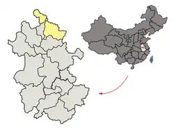 1. "China: Ānhuī (Prefectures, Cities, Districts and Counties) - Population Statistics, Charts and Map". www.citypopulation.de. Retrieved 13 April 2018.