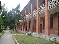 On November 19, 1937, the Japanese Army invaded Suzhou and occupied the campus of Suzhou High School. During the 8-year war, the school relocated seven times and changed its name twice, in order to minimize attention. After the fall of Suzhou, SHS initially moved to rural Yixing—the Suzhou High School at Boyang (亳阳苏中). The students and faculty members had to change their campus again when Japanese occupied the whole Sunan (Southern Jiangsu) region. The Suzhou High School at Shanghai (苏中沪校) was located at Fuzhou Road, Shanghai International Settlement.[25] On December 8, 1941, the U.S. declared war upon Japan and the Japanese Army eventually annexed the International Settlement. As a result, SHS moved to Changzhou ("Private Qingyun School", 私立青云), Yixing[26]("Private Hongyi School", 私立弘毅), though in the name of private schools.[27] In October 1945, Suzhou High School finally returned to its original campus after the surrender of Japan.[28] During the 1940s and 1950s, Suzhou High School continued to be one of China's top high schools, with 40-50 students admitted by Peking University, Tsinghua University and Jiaotong University each year.[29] Despite this, the high-level academic atmosphere comparable with top universities no longer existed.[20] During the Chinese Communist Revolution, the People's Liberation Army occupied Suzhou on April 27, 1949 and the Communist Party took over the school.[30]