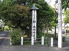 The Suzugamori execution grounds (鈴ヶ森刑場, Suzugamori keijō) were one of many sites in the vicinity of Edo (the forerunner of present-day Tokyo, Japan) where the Tokugawa shogunate executed criminals, anti-government conspirators and Christians in the Edo period. Others sites included Shibaguchi, Honzaimokuchou, Itabashi, near the Torigoe Myoujin shrine, in front of Saihouji in Kondobashi, and Kotsukappara.[1] The Suzugamori grounds were established in 1651 and operated until 1871. During this 220 year time period, an estimated 100,000 people were executed at Suzugamori.[2]