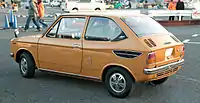 The Suzuki Fronte 360 two-door sedan (chassis code LC10) was introduced in March 1967 to replace the earlier Suzulight Fronte.[11] The "Y-16", as the project had been known, had a rear engine and ten inch wheels for maximum packaging.[12] The car sprang from the 1961 "FC" project, also with a rear-engine but with rear-hinged doors, a reverse-angle rear window (à la the Ford Anglia) and an overall rakish profile.[13] This earlier stillborn project, called the "Suzulight Sports 360", was a reaction to the success of the rear-engined Subaru 360 and had a unique 360 cc two-cylinder engine. Even earlier (1960), there was an open two-seater prototype called the FA, with the same engine and layout as used in the FC.[14] Suzuki's new test track in Ryūyō was put to intense use for the development program, while tropical and cold weather testing was carried out in Thailand and on Hokkaido respectively.[14] In the Japanese domestic market, the Fronte competed directly with the Mitsubishi Minica, Honda N360, Daihatsu Fellow, and the Subaru 360.