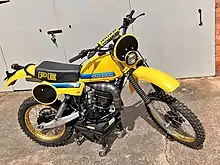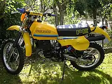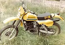 The initial 1977 PE250B proved rugged, well made and docile. The engine was effectively the 5-speed RM series motocross engine, with altered gearing, porting and a heavier flywheel, which produced only 28HP but had broader power and outstanding torque. This proved highly competitive and popular in all countries.[9][10][11]