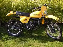 The following year, 1978, the decision was made to widen the model range and the PE175C was released. This was again based upon an RM Series machine (the RM125) with appropriate alterations. The PE250C continued its development and had many small but effective improvements. The PE175C was built upon the RM125A frame and 6-speed RM125C components, along with the "A" softer suspension. Lighting and speedometer were provided courtesy of TS Trail/street machines. All PE's until the PE175Z had 36mm forks common across each model year with damping and spring-rate changes to suit. This new PE175C was keenly priced and proved immensely popular.[12]
