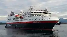 The entire 221-hour long voyage of the MS Spitsbergen around Spitsbergen, Svalbard was broadcast without interruption on NRK2 between 31 January at 18:00 to 9 February at 23:59 (CET),[5] and was also made directly available for streaming on NRK TV.[6] Alternatively, one-hour highlights from each day of the voyage were broadcast on NRK1 between 1–9 February.[4] In the broadcasts, hosts Kari Toft and Helge Lyngmoe observe the ongoings of the ship, and conduct interviews with passengers and crew members. They were assisted by archaeologist and Svalbard historian Per Kyrre Reymert and former Svalbardposten editor Arne O. Holm.[7][8]