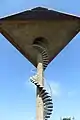 The pyramidal water tank is supported by three slender ferro-concrete legs which meet at the top of the tower. The centrally placed steps, also made of concrete, wind up elegantly from the ground.[3] The water tower was taken out of service in 1988 when alterations to the water supply system were introduced. Since 1990, it has been a listed building.[4]