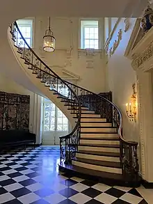 Inside, there is a vestibule, a library, a morning room, a dining room, four bedrooms, a sitting room, a basement, and an apartment in the attic.[6] The interior decoration was the product of collaboration between Shutze and Emily Inman, as Inman wanted to ensure that the house would be able to accommodate her collection of antiques.[7] The details of the interior are in high relief so as to cast shadows throughout the house.[7]