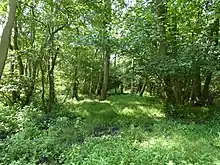 Part of this site is spring fed fen with diverse flora, including grass of Parnassus, marsh helleborine and several rare mosses. The fen is surrounded by wet woodland and grassland.[4]