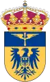 The units first coat of arms was used until 1994. Blazon: "Azure, under three open crowns or placed two and one, an eagle wings elevated and displayed, on its breast a smaller sinister turned eagle, all or".[4] Its second coat of arms was used from 1994 to 1998 and by the Flying School at F 10 from 1998 to 2002, and by the Flying School at F 16 from 2002 to 2003 and by the Flying School at F 17 from 2003. Blazon: "Or, an eagle azure wings elevated and displayed, on its breast a shield or with a smaller sinister turned eagle azure. On a chief azure a winged two-bladed propeller or".[4]