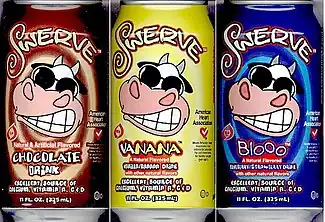 Swerve was a flavored and vitamin-fortified dairy drink introduced in the United States in 2003 by The Coca-Cola Company. It contained 51% skim milk, was sweetened by a blend of sugar and sucralose, and provided 30% of the recommended daily allowance of Vitamins A, C & D and Calcium. It was available in three flavors: a vanilla-banana flavor called Vanana, a blueberry-strawberry flavor called Blooo, and a chocolate flavor. It was most often found in school cafeterias.