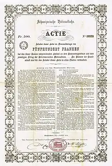 Share of the Swiss National Railway (Schweizerische Nationalbahn), issued 1. February 1876