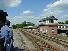The main line through here was closed on 5 May 1969. The trackbed was subsequently taken over for preservation, but in 1990 the sidings were devoid of its original features. Led by GCR benefactor David Clarke, double track was relaid from Swithland to Rothley, and then from Swithland to Quorn, eventually reaching Loughborough in 2000. The double track commences at Swithland, with GWR signalling as used on the GW&GC Joint Line. The signal box is the former Aylesbury South box which was located at Aylesbury railway station. The station was once again considered, but it was then decided that it would be close enough to Rothley not to be needed.