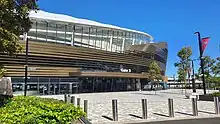 The Sydney Football Stadium, known commercially as Allianz Stadium,[2] is a multi-purpose stadium in Moore Park, a suburb of Sydney, New South Wales, Australia. Built as a replacement for the original Sydney Football Stadium, it was officially opened on 28 August 2022. The ground's major tenants are the Sydney Roosters of the National Rugby League, the New South Wales Waratahs of the Super Rugby, and Sydney FC of the A-League Men. It was one of the venues for the 2023 FIFA Women's World Cup,[3] and will host 2027 Rugby World Cup matches.