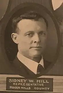 Sydney W. Hill was an American politician who served as a Socialist member of the Oklahoma House of Representatives representing Roger Mills County between 1914 and 1916. He was one of the first third party candidates elected to the Oklahoma House of Representatives alongside fellow Socialist Party Representatives David C. Kirkpatrick, N. D. Pritchett, Charles Henry Ingham, and Thomas Henry McLemore.[1]