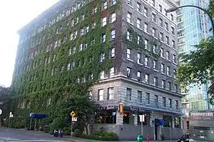 The Sylvia Hotel is a historic Vancouver, British Columbia, Canada landmark. Located at 1154 Gilford Street on English Bay near Stanley Park. Constructed in 1912, the Sylvia was designed as an apartment building by Mr. W.P. White, a Seattle architect. It was built by Booker, Campbell and Whipple Construction Company for a Mr. Goldstein, who had a daughter named Sylvia. During the Depression the Sylvia Court Apartments fell on hard times, and in 1936 the building was converted into an apartment hotel. With the advent of World War II, many of the suites were converted to rooms, to provide accommodation for crews of the merchant marine.