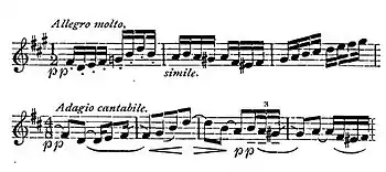 The theme of the second movement (top) transformed in the third movement (bottom)