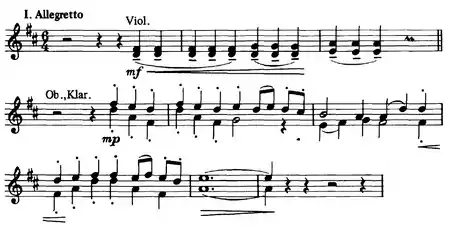 - Allegretto – Poco allegro – Tranquillo, ma poco a poco ravvivando il tempo all'allegro – Poco largamente – Tempo I – Poco allegro (in D major)