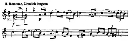 The scherzo borrows a theme from Symphony No. 1 in F minor, Op. 7 (1824) by Johann Wenzel Kalliwoda (1801–1866), whom Schumann admired.[6] The first and fourth movements borrow a theme which forms the continuous background for "How blessed are they that have endured" in Felix Mendelsohn's oratorio "St. Paul," a work which Schumann praised in a letter dated March 2, 1839.[7]