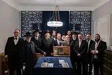 Just before the opening of the synagogue, a delegation of The Conference of European Rabbis with Rabbis from Germany, Great Britain, France, Austria, Spain, Switzerland, Sweden and Poland attended the ceremonial introduction of the Torah scroll into the synagogue on November 3, 2021. The ceremony at the Ljubljana Synagogue took place in the presence of the Chief Rabbi of Poland, Michael Joseph Schudrich, together with the Chief Rabbi for Slovenia, Ariel Haddad, the Rabbi for the Province of Styria, Schlomo Hofmeister, and the President of the Graz Jewish Community and Synagogue Ljubljana, Elie Rosen.[11] The Synagogue Ljubljana is the only Jewish institution of the Jewish community in the territory of the Republic of Slovenia, recognized by the Conference of European Rabbis.