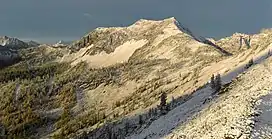 Most weather fronts originate in the Pacific Ocean, and travel northeast toward the Cascade Mountains. As fronts approach the North Cascades, they are forced upward by the peaks of the Cascade Range, causing them to drop their moisture in the form of rain or snowfall onto the Cascades (Orographic lift). As a result, the west side of the North Cascades experiences higher precipitation than the east side, especially during the winter months in the form of snowfall. During winter months, weather is usually cloudy, but, due to high pressure systems over the Pacific Ocean that intensify during summer months, there is often little or no cloud cover during the summer.[4] The months July through September offer the most favorable weather, and the Forest Service access road being open for the season. However, smoke from distant wildfires may potentially reduce visibility, and smoky summer conditions have been increasing with climate change.[5]
