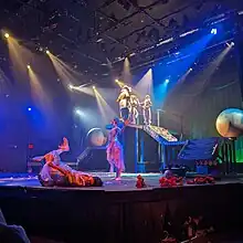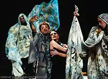 Founded in 2001,[2] Synetic Theater began as an artistic subgroup within the now defunct Stanislavsky Theater Studio which performed at the Church Street Theater in Washington, D.C. – the result of an artistic split by the husband and wife team of Paata and Irina Tsikurishvili from Andrei Malaev-Babel, the other co-head of The Stanislavsky Theater Studio.[3][4] It made its artistic debut in April 2002 with a wordless adaptation of Shakespeare's Hamlet, known as Hamlet…the rest is silence. The production was remounted the following season, receiving the Helen Hayes Award for Outstanding Resident Play, Outstanding Choreography and Outstanding Director.[5] Despite the artistic split, Synetic Theater and The Stanislavsky Theater Studio continued to share resources and performance space into the following season, but in 2003, after a series of disagreements over financial matters, Synetic set off on its own. The following year Synetic merged with Classika Theater,[6] a children's theater based in Shirlington, Virginia.[7]
