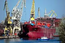 Since 2009, Szczecin Industrial Park (Stocznia Szczecińska) has been created on the site of the former Szczecin Shipyard in the north-east of Szczecin.[4] The 45-hectare site, about two kilometres from the city centre is well equipped shipbuilding and ship repair, with 3 slipways (Wulkan Nowy, Odra Nowa and Wulkan Stary), 750 m of quays, 80 000 sqm of prefabrication yards and over 10 ha of warehouses.[5] The assets are owned by MARS Closed Investment Fund.[6]
