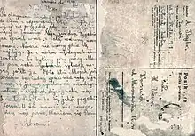 Wanted by the Gestapo, Szlama Ber Winer was whisked to Zamość where subsequently he also wrote back to his friends at the Warsaw Ghetto about the existence of a death camp in Bełżec mere 44 kilometres (27 mi) south of the city.[9] A few days after writing this last communiqué, around the 10th of April 1942, he was apprehended together with members of his extended family, and deported to the Bełżec extermination camp along with some 3,000 Jews of the Zamość Ghetto, marched from the market place to the awaiting Holocaust trains at the station.[10][12][13] Two weeks later, the 14-year-old nephew of Szlama Winer, Abram Bajler, wrote a postcard from Zamość to Warsaw – sent on 24 April 1942 – after the deportation of his own uncle to the death camp. The message reads:
