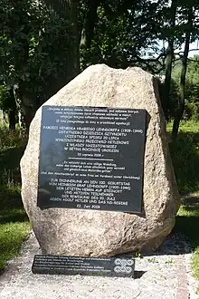 German Foreign minister Joachim von Ribbentrop used the palace throughout his sojourns at the nearby Wolf's Lair between 1941 and 1944.[6] The last proprietor of the estate, Heinrich Count von Lehndorff, was executed by the Nazis for his participation in the plot against Hitler that failed with the faulty assassination attempt on 20 July 1944, at the nearby Wolf's Lair wartime military headquarters of the Nazi regime. During World War II, the Germans operated a subcamp of the Stutthof concentration camp in the village, intended for female prisoners.[7][8]